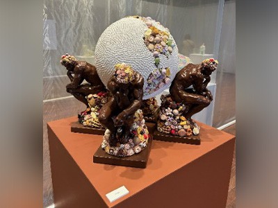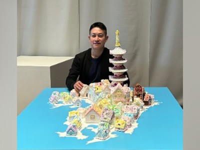 『渡辺おさむのお菓子のミュージアム』では、現代美術作家・渡辺おさむさんによるスイーツ・デコ・アートを展示。樹脂でつくられたクリームやマカロン、チョコレートなど本物そっくりの素材をもとに生み出されたカラフルな作品26点が並びました。